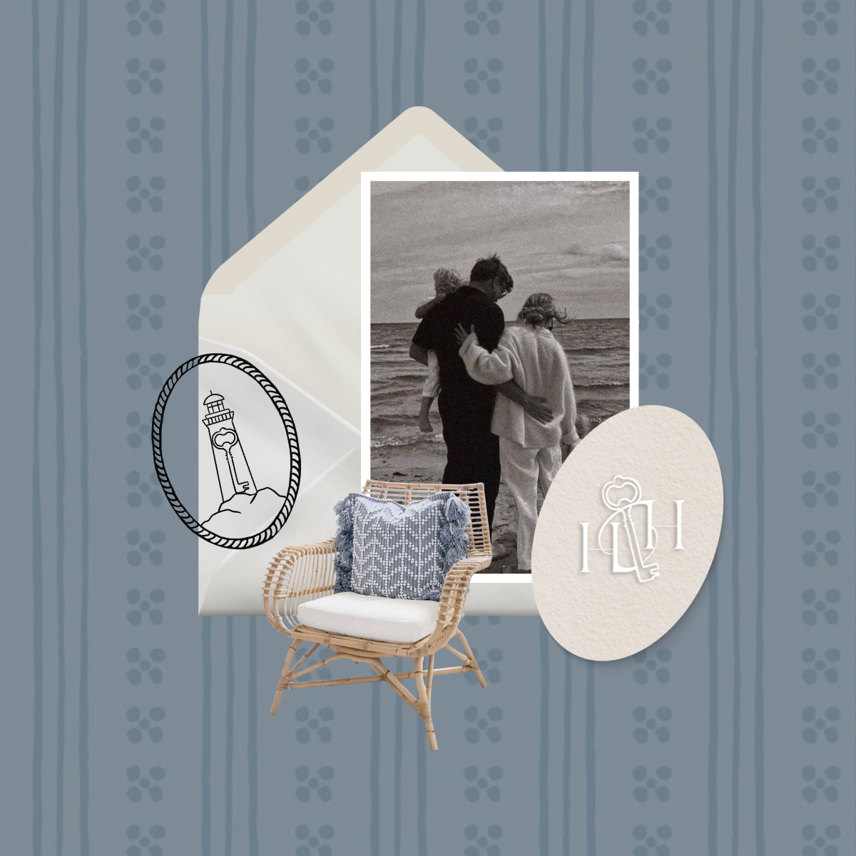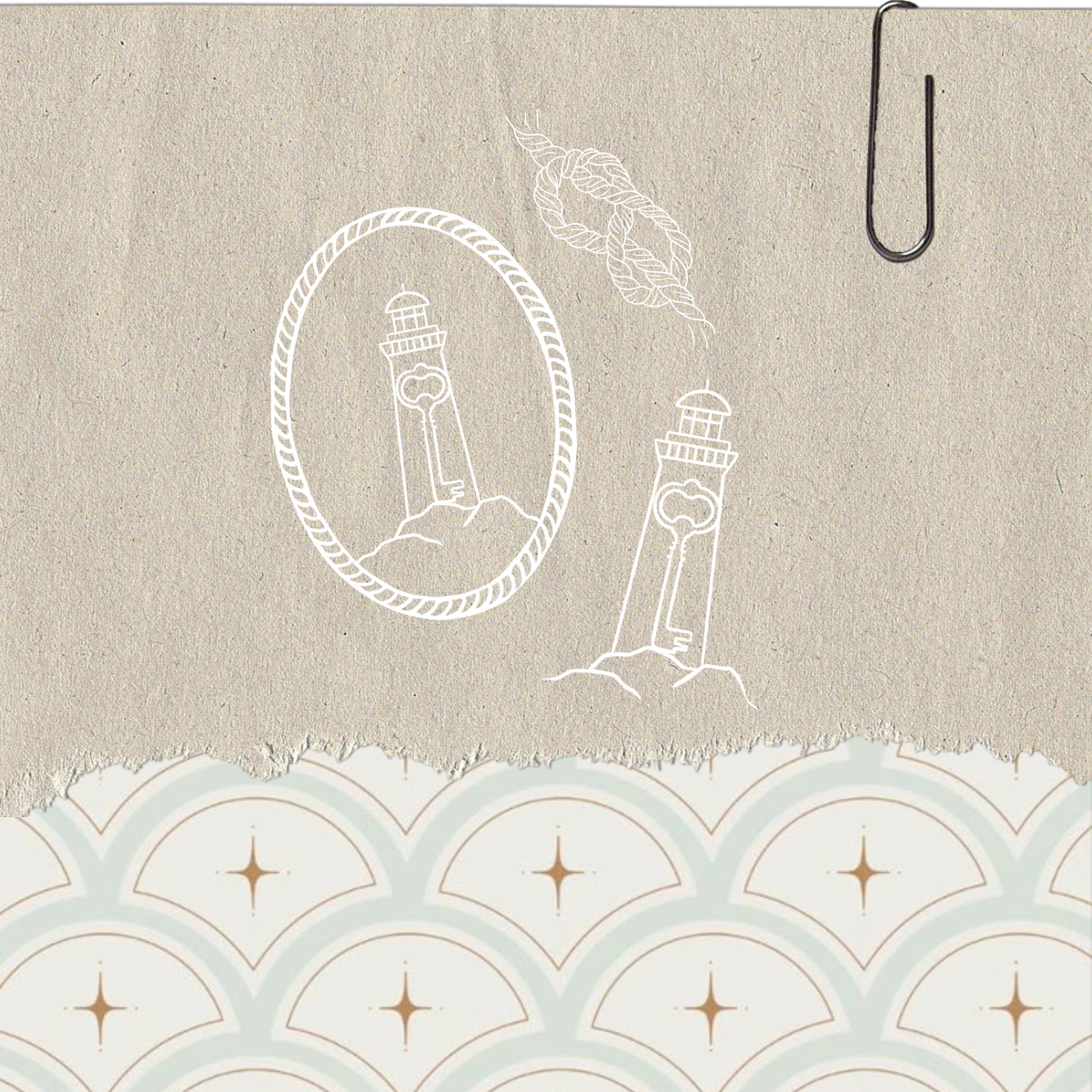 The visual palette draws from sea foam green, dune-sand beige, weathered linen, deep chocolate brown, and vintage navy, creating a palette that feels wind-worn and anchored in tradition. The art direction pulls from tactile seaside textures—rope, stone, aged paper, wicker, waves, shells—paired with an iconic lighthouse mark and key icon symbolizing home, safety, and arrival.