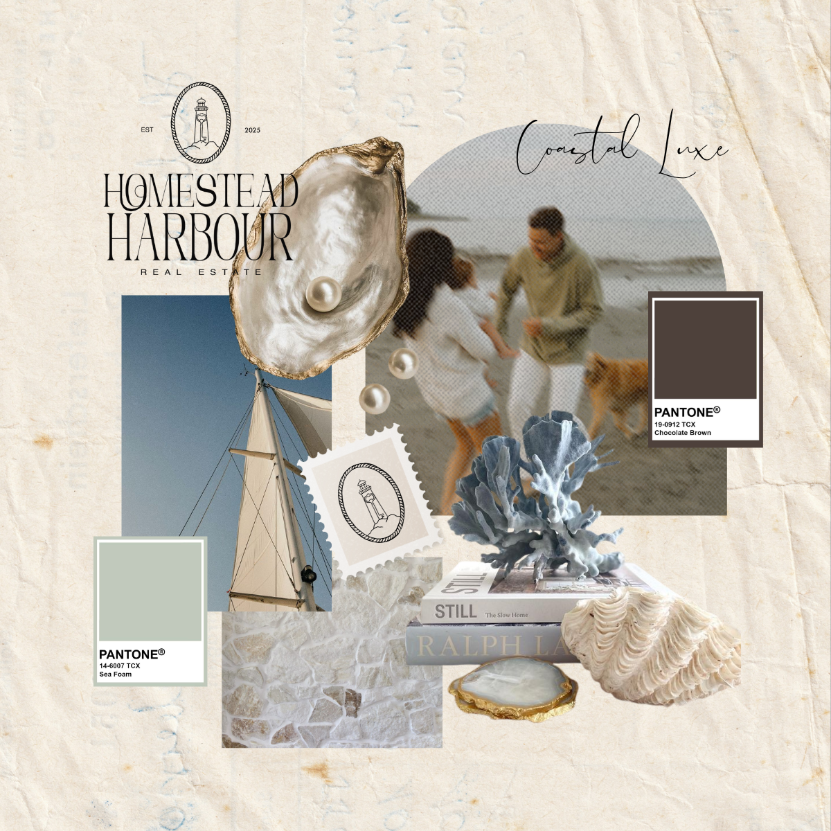 Homestead Harbour is a coastal-rooted real estate brand made for families, retirees, and ocean-loving homeowners who dream of seaside mornings, driftwood paths, and homes that smell like salt and sun. The emotional anchor of this brand lives in words like nostalgic, maritime, heritage, calming, and timeless. Its voice carries the warmth of a handwritten postcard from a coastal town—friendly, poetic, and a little whimsical, speaking to memory as much as lifestyle.